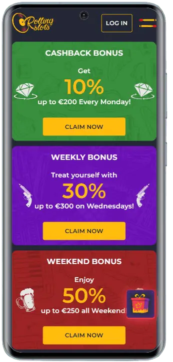 - Claim the Bonus: Proceed to claim your Rolling casino bonus with or without the Rolling Slots bonus code and begin playing game.